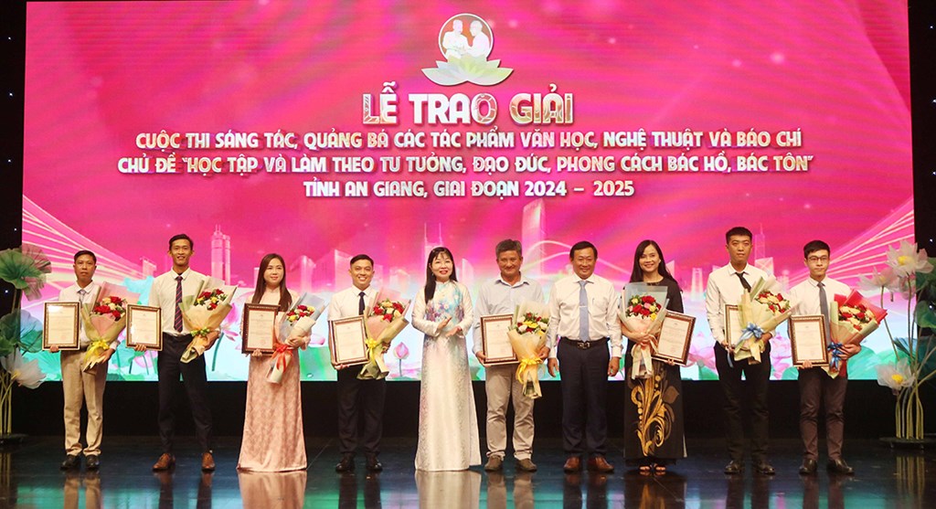 Ngày 5/6, Ban Tuyên giáo và Dân vận Tỉnh ủy An Giang tổ chức Lễ tổng kết, trao giải Cuộc thi sáng tác, quảng bá các tác phẩm văn học, nghệ thuật và báo chí chủ đề “Học tập và làm theo tư tưởng, đạo đức, phong cách Bác Hồ, Bác Tôn” tỉnh An Giang, giai đoạn 2024 - 2025.
